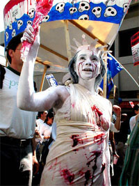 If Reggie really wants to protest the media, he should take a hint from this, um, spirited protester!