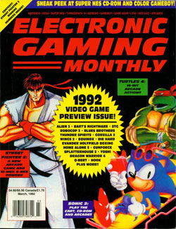 Oh my goodness, is the Quartermann going to get two right in a row?? It certainly looks that way. Really the only problem with the Q's rumor is the name of the game. 1992 brought Capcom's update to Street Fighter II, Street Fighter II: Champion Edition. The game updated the characters, added new moves, and balanced things out a bit. It didn't really add new characters, like the Quartermann suggests, they simply made the four bosses (Balrog, Vega, Sagat and M. Bison) playable. I'm not really sure how "unique" any of those fighters are, but who am I to argue? What's that? Oh right, that's the whole purpose of this show. Anyway, it looks like Quartermann got it right, good for him. But wait ... this is the March 1992 issue of EGM and this game came out in Japan in April of 1992. Hmm, perhaps that wasn't a real crazy guess after all.