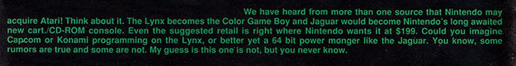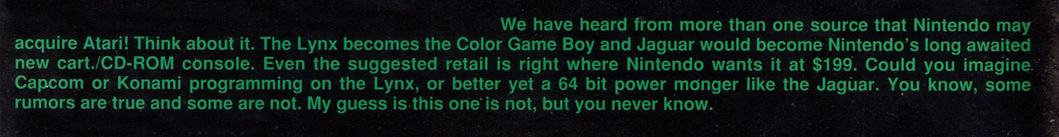 This is a real rumor taken directly from the September 1993 issue of Die Hard Game Fan ...