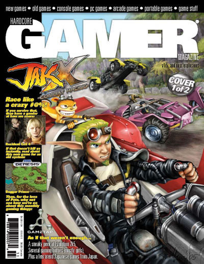 Cover Story: Stop me if this sounds familiar, first party company decides to capitalize on the success of their popular platformer and turn it into a (wait for it) racing game! Yeah, I know, it's not that original of an idea, but maybe Jak X will actually be a lot of fun. At least they aren't racing go karts, right? In this Jak X centric issue of Hardcore Gamer Magazine we learn why we should care about Sony's newest racing game!
